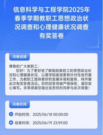 信息科学与工程学院(软件学院)开展教职工思想政治状况和心理健康状况调查有奖答卷活动